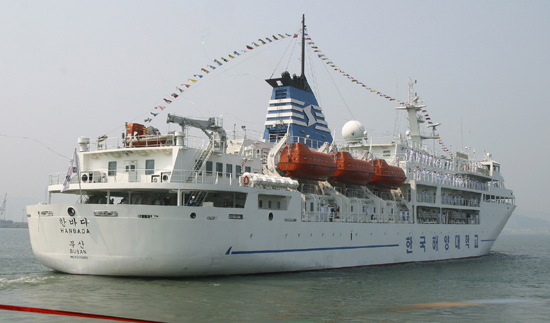 한국해양대학교(총장 박한일)는 9일 오후 2시 학내 시청각동과 부두에서 교직원과 학생, 학부모 등이 참석한 가운데 실습선 한바다호와 한나라호의「2012학년도 1학기 원양항해실습 출항식」을 가졌다.