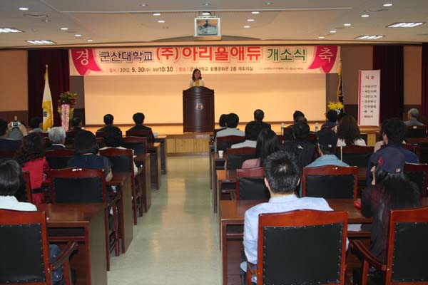 교과부가 선정한 대학주도 방과후 학교인 (주)아리울에듀 개소식이 30일(목) 군산대학교 황룡문화관 2층 대회의실에서 채정룡 군산대 총장, 김승환 전라북도 교육감, 국중하 우신건설회장, 군산대학교 주요 보직자 등 100여명이 참석한 가운데 성대하게 열렸다.