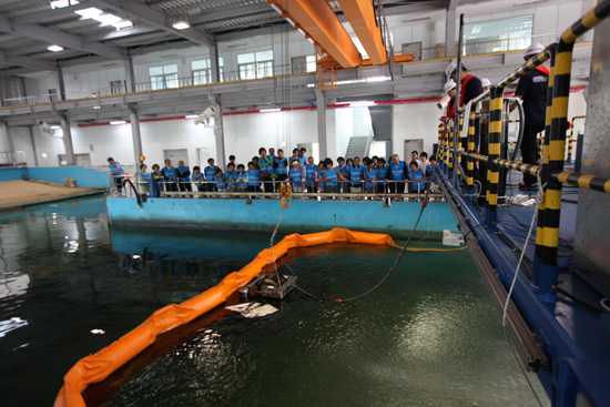 특히 항사모 회원들은 해양환경관리공단이 특허 등록한 ‘인공해안이 설치된 조파수조’에 큰 관심을 보였다. 이곳에서는 교육 참가자가 직접 기름을 조파수조에 뿌리고 이를 제거해 볼 수 있다.