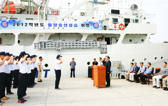 군산대 채정룡 총장은 격려사를 통해 “해양자원은 미래 신성장의 동력으로 무한한 블루오션이 될 수 있는 만큼, 실습에 나서는 학생들이 모두 강의실에서 배운 이론을 토대로 종합적이고 실질적인 실무지식을 익혀 새로운 세기를 이끌 고급인력으로 성장하길 바란다”고 말했다.