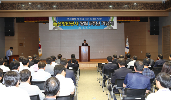 울산항만공사(UPA, 사장 박종록)는 4일 오전 11시 30분 울산항마린센터 2층 다목적 홀에서 울산항만공사 임직원, 울산광역시, 울산지방해양항만청, 울산항 유관기관 및 업․단체 등 내․외빈 100여명이 참석한 가운데 창립 5주년 기념식을 개최하고 지난 5년간의 성과와 경험을 바탕으로 앞으로의 5년을 새로운 도약의 시기로 삼기로 했다.