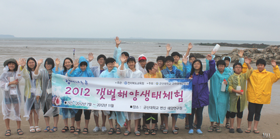 군산대학교 과학영재교육원(원장 유수창)은 전라북도 교육청과 함께 6일(금)부터 군산대학교 해양연수원에서 한국과학창의재단과 복권위원회의 지원을 받아 2012 함께 나누는 갯벌, 해양생태체험캠프를 열고 있다.