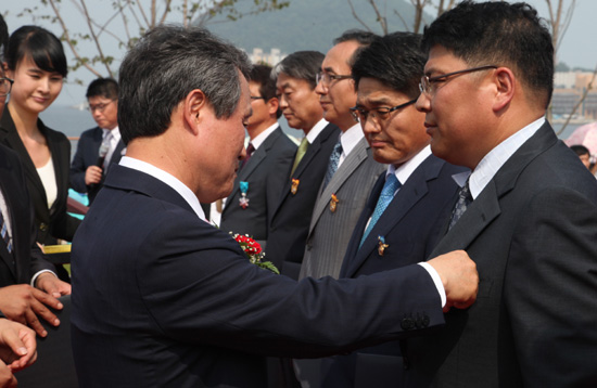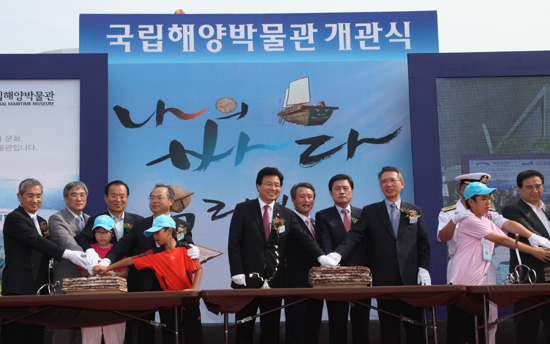 국립해양박물관은 ‘나의바다, 우리의 미래’라는 컨셉으로 해양문화, 해양역사·인물, 항해선박, 해양생물, 해양체험, 해양산업, 해양영토, 해양과학 등 해양의 모든 분야를 망라하는 세계 최초의 종합해양박물관이다. 물방울을 형상화한 아름다운 외관은 세계적 해양도시 부산의 랜드마크로 손색이 없으며 규모로는 우리나라 세 번째에 해당하는 큰 규모를 자랑한다. (사진:이날 개관식엔 김형오 전 국회의장, 이재균 국회의원 등 주요 인사들이 참석, 개관 축하 떡을 절단하고 있다)