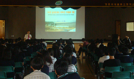 마 부장은 이에 앞서 지난 16일에는 영종도의 영종국제물류고등학교 1, 2학년생 100여명을 대상으로 ‘아시안 실크로드에서 이뤄진 국제물류의 흐름’이란 제목으로 1시간 10분간 강의를 하기도 했다.