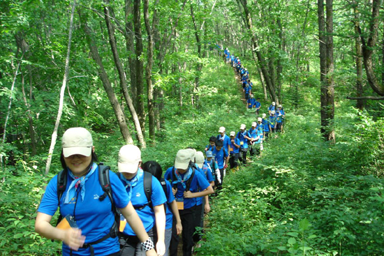 여름방학을 맞은 청소년 300여명이 국토의 등줄기인 백두대간 곳곳을 직접 체험하면서 국토사랑의 마음과 호연지기를 키우는 청소년 백두대간 산림생태탐방이 28일부터 다음달 2일까지 5박 6일 동안 백두대간 주요 권역에서 열린다.(사진:지난해 오대산에서 열린 제11회 청소년 백두대간 생태탐방 모습)