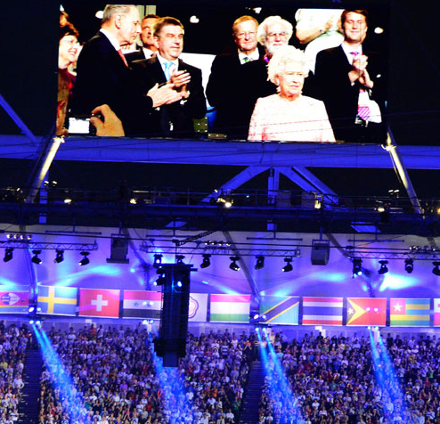 식전행사가 진행되는 가운데 가장 눈에 띄는 장면 중 하나는 엘리자베스 2세(87)의 등장으로, 낙하산을 펴고 뛰어 내렸다. 영국 여왕 엘리자베스 2세가 8만 관중의 환호 속에 대회 개막을 전세계에 알렸다. "런던올림픽 개회를 선언합니다." (사진)