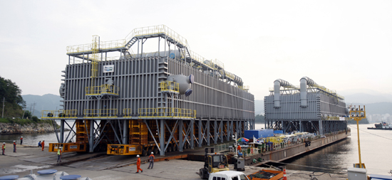 이날 출하한 담수증발기는 폭 22m, 높이 18m, 길이 62m에 중량 1800t에 달하며, 부식에 강하면서 강도가 뛰어난 ‘듀플렉스(Duplex)’라는 소재를 사용했고 증발기1기당 약 35만개의 튜브가 설치된 것이 특징임. 바닷물을 증발시키는 데 사용하는 35만개의 튜브는 엄격한 수압테스트를 거쳐 품질의 신뢰도를 향상시켰다.