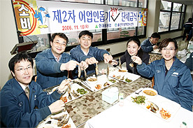 이날 단체급식 행사에서는 울산해양청 박종국 청장 등 해양청 관계자가 현대중공업을 방문해, 이 회사 박중순 상무(경영지원본부)와 함께 본관식당에서 식사를 하며 행사의 의미를 더했다.