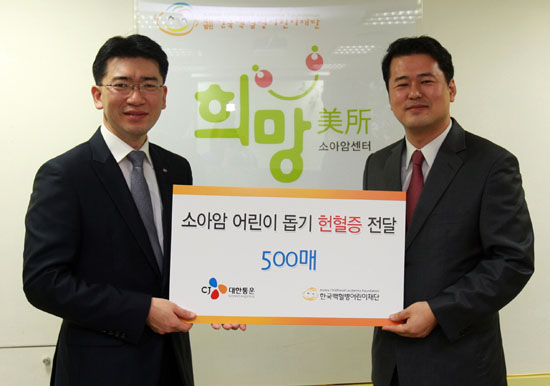 CJ대한통운 소아암 어린이에 헌혈증 5백장 기부