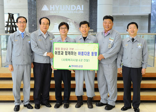 한편, 현대중공업 임직원들은 매월 월급의 1천원 미만 금액을 기부하는 급여우수리 운동에 동참하고 있으며, 사내 동호회들은 집수리 봉사, 독거 어르신 돌보기, 농촌 봉사 등 다양한 봉사활동을 펼치고 있다.