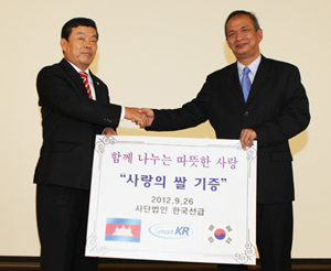 오 회장은 “장래가 촉망되는 학생들에게 장학금을 전달하여 세계적인 인재로 성장하는데 도움을 주고, 사랑의 쌀을 통해 한국과 캄보디아의 우호 증진에 기여하게 되어 기쁘다. 이번 행사는 민족 최대의 명절 한가위를 앞두고 나눔의 정을 실천하는 의미 있는 자리다.”고 말했다.