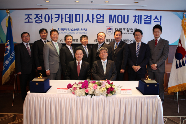 대한조정협회가 한국해양소년단연맹과 조정아카데미 MOU를 체결하며 조정 대중화에 앞장선다.