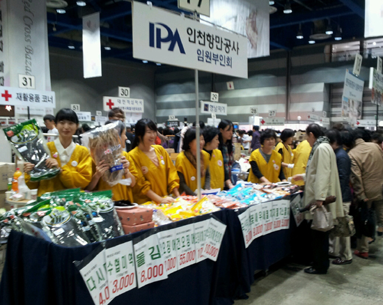 인천항만공사(IPA 사장 김춘선) 여성 직원들과 임직원 부인 등 IPA 가족들은 17일 서울 삼성동 코엑스애소 대한적십자사 여성봉사특별자문위원회가 개최한 ‘2012년 적십자 바자회’에 참여, 기부와 봉사를 통해 이웃과 나누는 사랑을 실천했다.