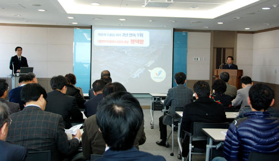 경기평택항만공사(사장 최홍철)는 경기도경제단체연합회(회장 이중구)와 19일 평택항 마린센터에서 경기도 수출입기업 CEO들을 초청해 평택항 홍보설명회를 개최했다.