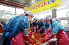 (사진:서울 중구 약수노인종합복지관에서 열린 이날 행사에서 CJ대한통운 임직원 백여 명이 김장김치 3천600kg을 손수 담갔으며, 이를 중구지역 독거노인, 조손가정 등 350여 가구에 전달했다.)