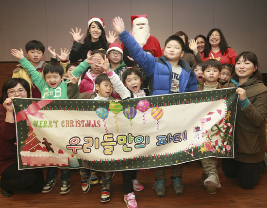 현대중공업의 외국인 감독관 부인들이 주축이 된 ‘고아원 후원회(Orphanage Committee)’는 15일(토), 울산양육원(울주군 언양읍) 원생 120여 명을 동구 서부동의 외국인 사택으로 초청해 크리스마스 파티를 열었다.(사진: 15일(토) 동구 서부동 현대중공업 외국인 사택에서 ‘고아원 후원회’가 울산양육원 원생들을 초청해 크리스마스 파티를 열었다.)