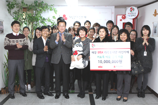 이번 기금은 지난 달 STX가족봉사단이 STX남산타워에서 진행한 ‘저소득 가정 따뜻한 연말나기 지원 일일 자선카페’를 통해 얻은 수익금으로 마련됐다.