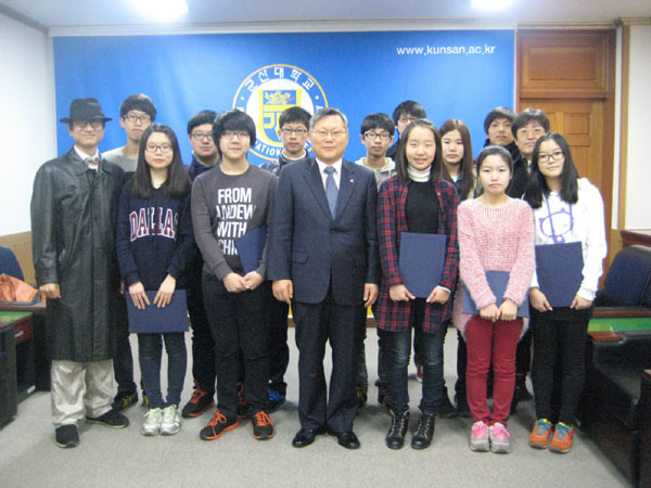 군산대학교 문화사상연구소와 철학과가 공동으로 주최한 제 1회 군산 중학생 토론대회 입상자에 대한 시상식이 16일(수) 군산대학교 본부 총장 접견실에서 열렸다.
