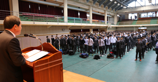 인천항만공사(IPA 사장 김춘선)는 12일 오전 인항고등학교 학생 20명에게 1천만원의 장학금을 전달했다.(사진:12일 오전 열린 인항고등학교 개학식에서 김춘선 인천항만공사 사장이 이 학교 학생들에게 장학금을 전달한 뒤 당부의 말을 전하고 있다.)