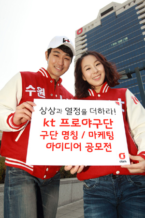 KT(대표이사 이석채, www.kt.com)가 프로야구단 이름과 야구단 마케팅 아이디어 공모전을 실시하며 제10구단 창단 승인 이후 첫 공식 활동을 국민과 함께 하는 행사로 진행한다.KT는 3월 25(월)부터 4월 7일(일)까지 프로야구단 명칭 공모를 진행한다. 온라인으로 진행되는 이번 공모는 전 국민 누구나 참여할 수 있으며, 공모 홈페이지(baseball.kt.com)를 통해 구단명과 그 의미에 대해 간략히 작성하여 제출하면 된다.