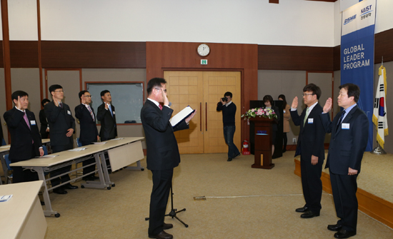 15일 대우조선해양은 서울 홍릉동 한국과학기술원(KAIST) 홍릉캠퍼스에서 리더 육성 과정인 ‘제 10기 DSME MBA’ 입소식을 가졌다.(사진:15일 KAIST 홍릉 캠퍼스 제10기 DSME MBA 입소식에서 교육생 대표가 선서를 하고 있다.)