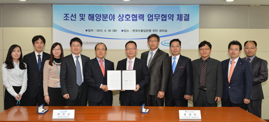 한국수출입은행(www.koreaexim.go.kr, 은행장 김용환, 이하 ‘수은’)은 30일 여의도 본점에서 한국선급(회장 전영기)과 ‘조선 및 해양 플랜트 분야 상호협력을 위한 업무협약‘을 체결했다.양 기관은 이날 업무협약을 계기로 ▲수은은 선박금융 제공 거래에 대해 KR의 선급참여를 지원하고 ▲KR은 수은에 조선과 해양플랜트 산업관련 기술자문을 제공하며 ▲해외 프로젝트와 임직원 교육 등에 대해서도 상호 협력키로 합의했다.