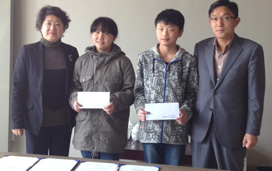 군산대학교 교육대학원(원장 정성은)은 중국 만리장성 이남의 유일한 조선족학교인 청도시 정양학교와 학생 2명에게 2년 동안 매월 소정의 장학금을 후원하기로 협약하고 장학금을 전달했다.