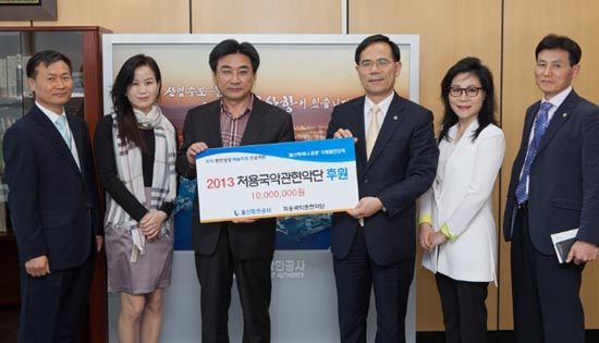울산항만공사(UPA, 사장 박종록)는 지난 5월 2일 울산항만공사 사장실에서 처용국악관현악단(단장 김영근)에게 ‘2013 울산메세나’ 지원금을 전달했다 고 전했다.