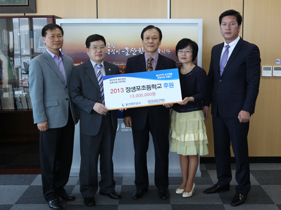 울산항만공사(UPA, 사장 박종록)는 지난 5월 6일 울산항만공사 사장실에서 ‘2013 장생포초등학교 후원금을 전달했다’ 고 전했다.