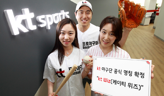 KT(www.kt.com, 대표이사 이석채)가 제10구단 창단 이후 ‘국민과 함께 하는 구단’의 취지로 진행했던 프로야구단 명칭과 마케팅 아이디어 공모전 수상자와 함께 공식 구단 명칭을 7일 확정 발표했다.