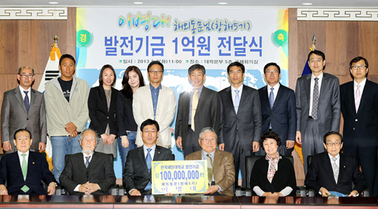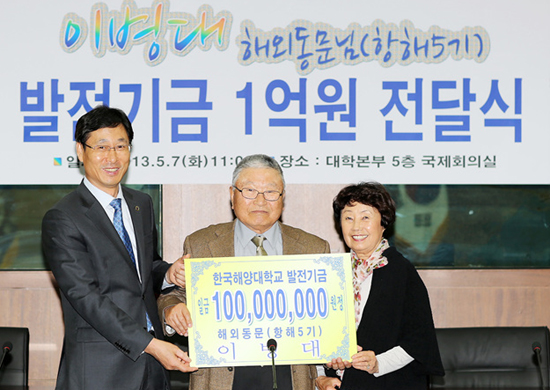 한국해양대학교(총장 박한일)는 재미 동문인 이병대 씨가 7일 오전 대학을 방문해 발전기금으로 1억 원을 기탁했다고 밝혔다.