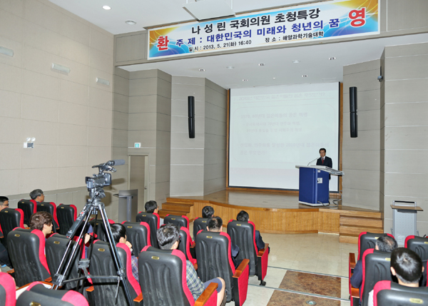 한국해양대학교(총장 박한일)는 지난 21일 오후 해양과학기술대학관 100호 강의실에서 나성린 국회의원(부산진구 갑)을 초청, 특별 강연을 선보였다.