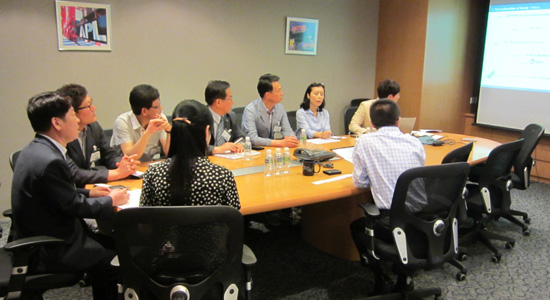 <사진설명> 여수항과 광양항 활성화를 위해 합동 해외IR을 추진중인 광양만권 합동마케팅 기획단이 싱가폴 APL사를 방문, 광양항에 대해 설명을 하고 있다.