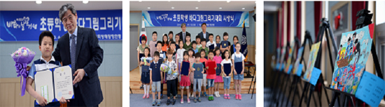 또한, 바다그림그리기 대회 작품에 대하여 공정한 심사를 통해 대상, 금상, 은상, 동상 등 입선작 155개 작품에 대하여 시상식을 진행하여 해당 초등학생 28명이 참석한 가운데 상장을 수여했다.