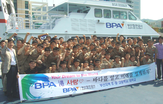 ‘BPA 항 사랑 - 바다를 알고 미래를 설계하자’로 기획된 이 프로그램은 학생들이 BPA 항만안내선 새누리호에 승선, 부산항 국제여객터미널부터 북항재개발사업지역, 컨테이너터미널과 오륙도 등을 돌며 부산항을 체험하는 코스다.