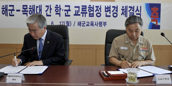 안영섭 목포해양대학교 총장은 6월 17일 해군교육사령부 회의실에서 구옥회 해군교육사령관과「목포해양대학교와 해군 간 학․군 교류협정」를 체결했다.