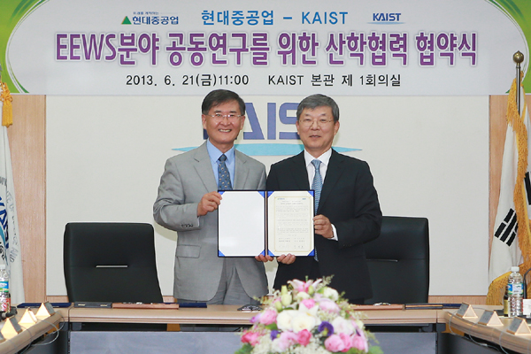 현대중공업은 21일 오전 카이스트 본관에서 「현대중공업-카이스트 EEWS 연구센터(이하 ‘HK연구센터’)」 설립과 「에너지‧환경분야 기술」개발을 위한 협약을 체결했다.
