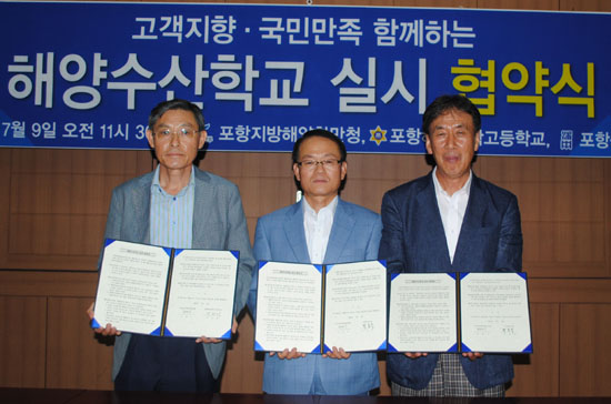 포항해양항만청(청장 공평식)은 9~10일 11시30분 양일간, 고객지향․국민만족 함께하는 해양수산행정계획에 따라 포항해양과학고등학교, 포항중학교, 영신고등학교와 해양수산학교 실시 협약식을 체결했다.