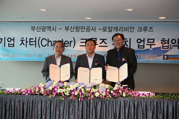 부산항만공사(BPA)는 17일 부산롯데호텔에서 부산광역시, 로얄캐리비안크루즈(RCCL)와 다국적기업의 전세 크루즈선 유치를 위한 업무 협약을 체결했다.