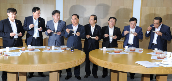 정부 국무위원 어업인 돕기 위해 물회 시식 행사 가져