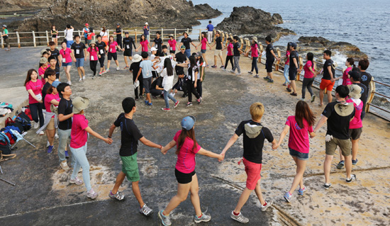 해양환경관리공단(KOEM, 이사장 곽인섭)의 해양환경 서포터즈 ‘아라미’ 50여명과 아시아공동체학교의 다문화가정 아이들 13명은 8월 22일, 독도를 방문해 ‘독도는 우리 땅’ 퍼포먼스를 펼쳤다.