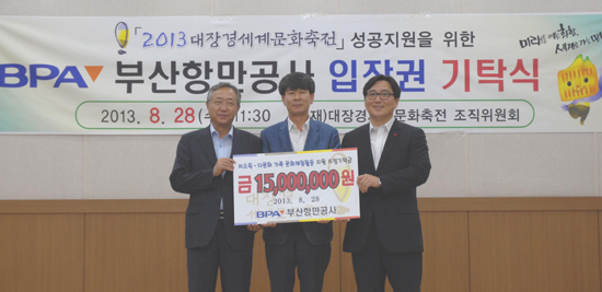 부산항만공사(BPA)는 28일 경남발전연구원 대강당에서 대장경문화축전 조직위원회, 경남사회복지공동모금회와 함께 저소득 가정에 2013 대장경 문화축전 체험 지원을 위한 기탁식을 가졌다.