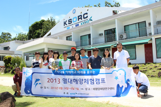 한국해양과학기술원(원장 강정극)이 8월 24일부터 9월 1일까지 9일간 마이크로네시아 축(Chuuk)주(州)에 위치한 태평양해양연구센터에서 2013년도 열대해양캠프를 실시했다.