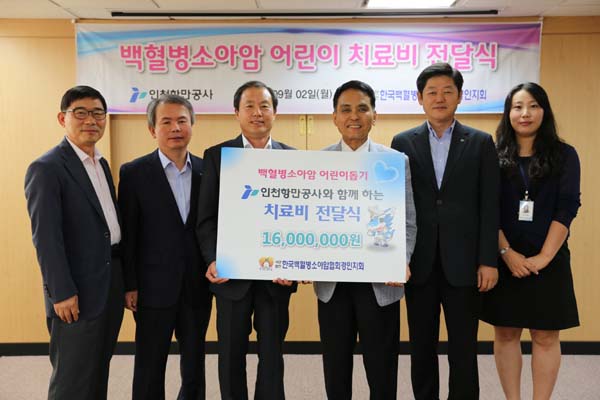 인천항만공사(IPA・사장 김춘선)는 2일 오전 10시 사내 대회의실에서 백혈병, 소아암으로 고통받고 있는 어린이 치료를 위한 성금 1,600만원을 (사)한국백혈병소아암협회 경인지부에 전달했다.