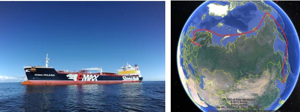 스테나 폴라리스호는 지난 16일 러시아 우스트루가항에서 1차 연료유 수급을 받은 후 출항, 20일 덴마크 스카우(Skaw)항에서 다시 저유황유인 2차 급유(300m/t)를 한 후 같은 날 3시에 출항했다. 2차 급유를 하는 목적은 북해(North Sea)의 특별해역(SECA)에서는 대기오염을 우려하여 고유황유의 연료의 사용을 금지시키고 있기 때문이다.