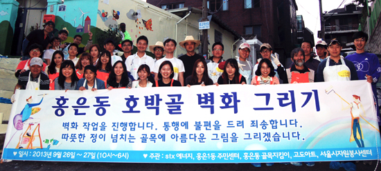 STX에너지가 9월 26일, 27일 이틀 간 서대문구 홍은1동 중앙로 3길 호박골 마을에서 벽화 그리기 봉사활동을 실시했다.