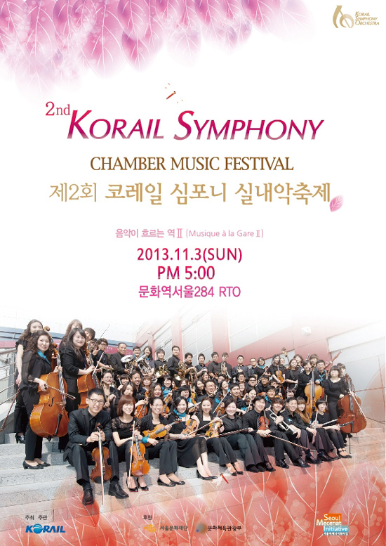 코레일은 3일(일) 오후 5시 「문화역서울 284」(舊 서울역)에서 ‘제2회 코레일 심포니 실내악 축제’를 개최한다. 코레일 심포니 오케스트라는 재능기부로 운영되는 음악단체로 모든 공연은 무료로 진행된다. 이번 실내악 축제도 음악을 좋아하는 누구나 관람할 수 있다.