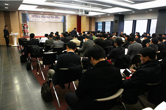 한국해운조합(이사장 주성호)은 12월 5일(목) 오후 4시 코리안리재보험(주) 대강당(서울 종로구 소재)에서 2013년도 KSA Hull·P&I세미나를 개최했다. 이번 세미나는 조합원 및 해운선사와 보험사, 보험중개업체, 검정업체, 변호사 등 해운관련업체 관계자 200여명이 참석한 가운데, 국내외 해상보험 전문가들과 함께 해상보험시장의 동향과 전망 등에 대한 정보를 공유하고, 참석자의 의견을 조합 공제사업에 반영함으로써 보다 나은 보험 서비스를 제공하고자 마련되었다.