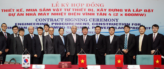 두산중공업은 24일, 베트남 하노이에서 발주처인 베트남전력공사(EVN) 황 꾸억 부응(Hoang Quoc Vuong) 회장, 두산중공업 김헌탁 부사장 등이 참석한 가운데 1200MW급(600MWⅹ2) ‘빈탄(Vinh Tan) 4’ 석탄화력발전소 건설 계약을 체결(사진)했다.