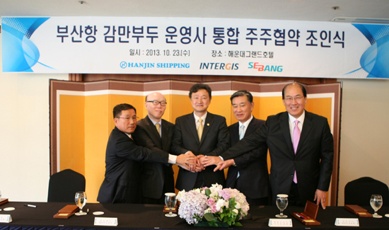 부산항 북항 감만부두의 운영사들이 지난 10월 22일 통합회사 설립을 위한 주주협약서를 체결했다. 세방과 인터지스, 한진해운은 부두생산성 제고와 항만경쟁력 강화를 위해 통합회사 설립을 추진하기로 했다.